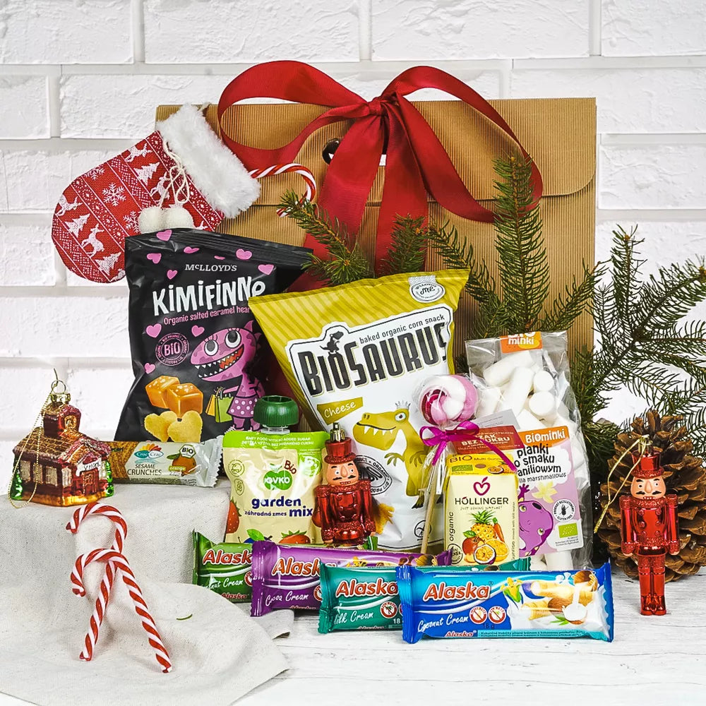 Kosz prezentowy Biodarek od Organic Market to doskonały pomysł na słodki prezent dla dziecka. Pełen zdrowych przekąsek i smakołyków, będzie doskonałym upominkiem na Mikołajki lub pod szkolna choinkę.